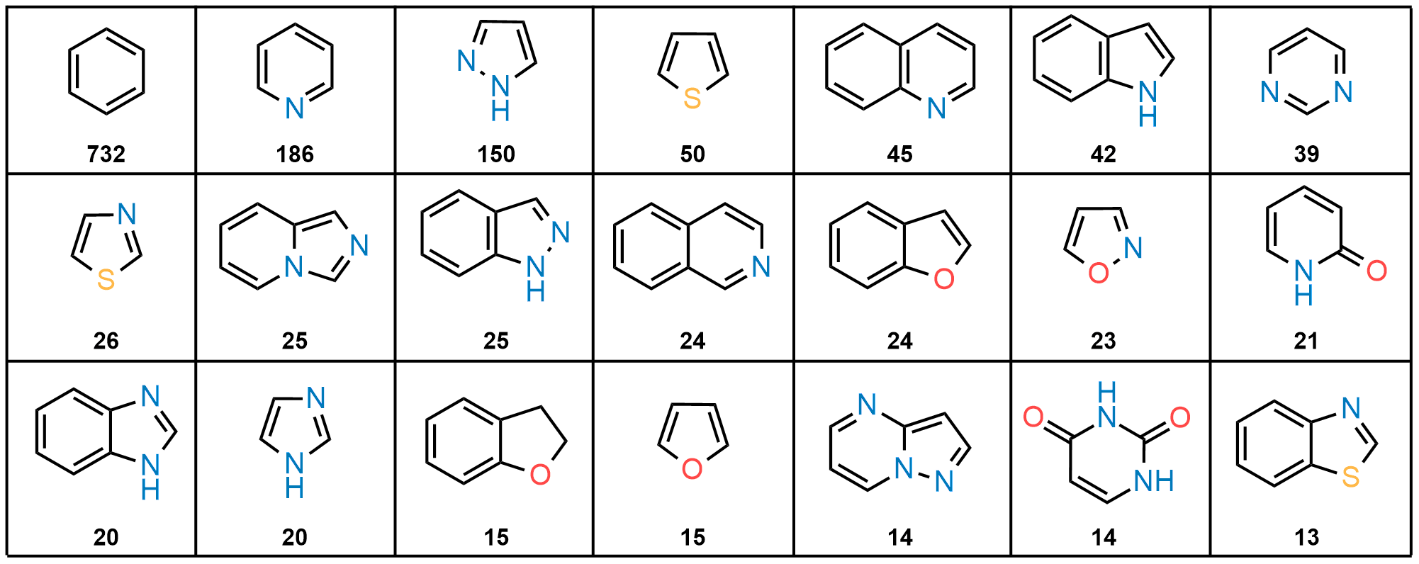 Most Frequently Used Heteroaromatic Ring Systems in the HEF Library